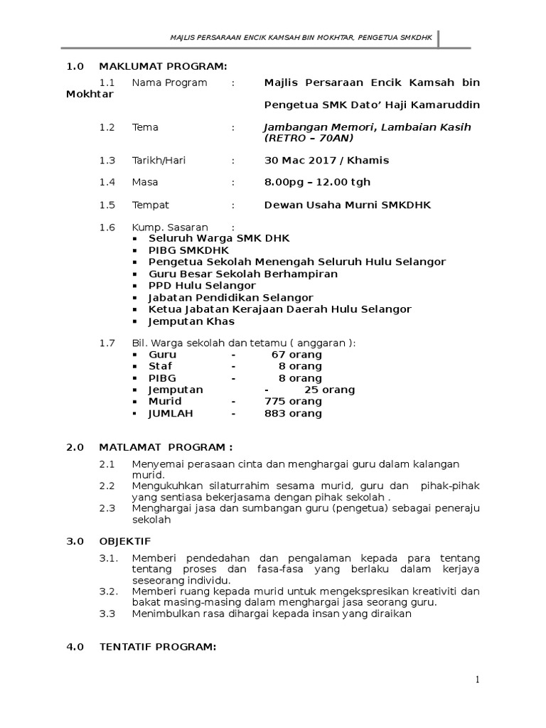Kertas Kerja Majlis Persaraan 2017 Latest Pdf