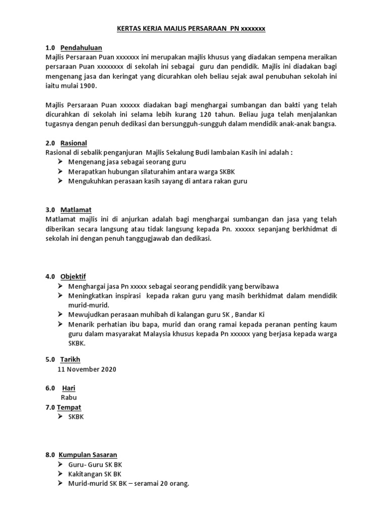 Kertas Kerja Majlis Persaraan Pdf
