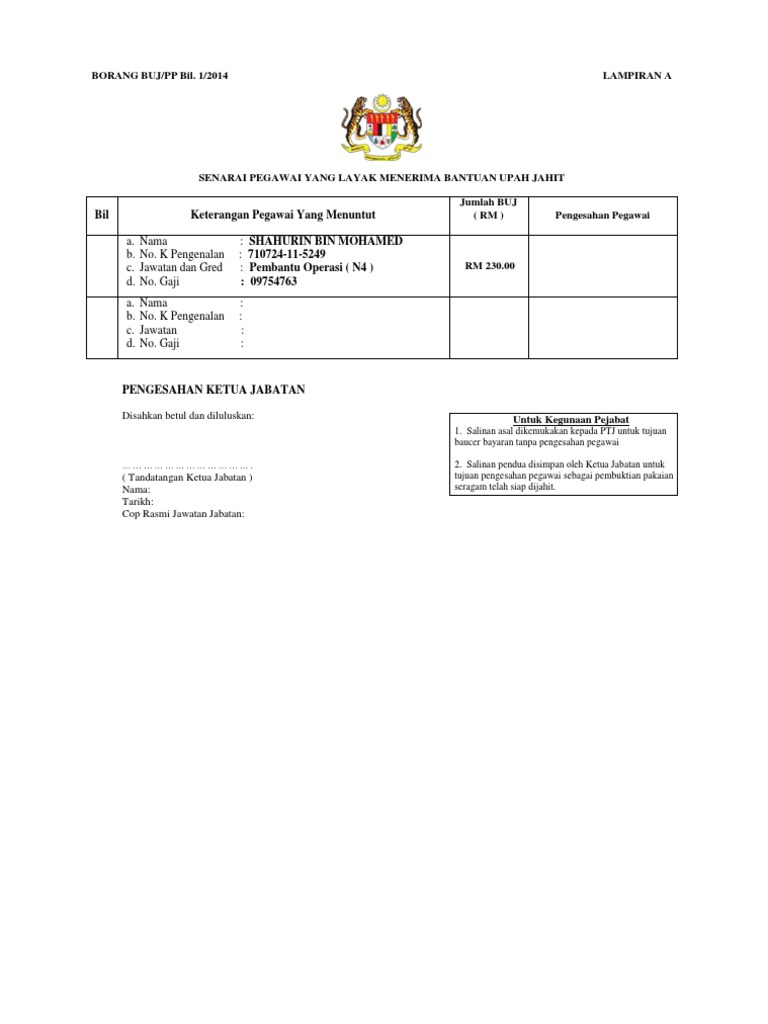 Pekeliling perkhidmatan bilangan 1 tahun 2014 created date. 41 pegawai yang layak kemudahan. BAYARAN BALIK UPAH JAHIT.