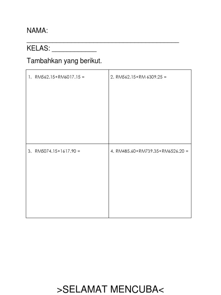 Lembaran Kerja Tambah Wang Tahun 4 Pdf